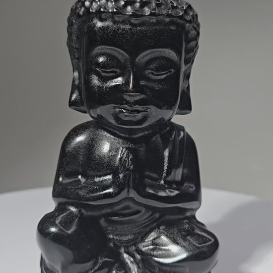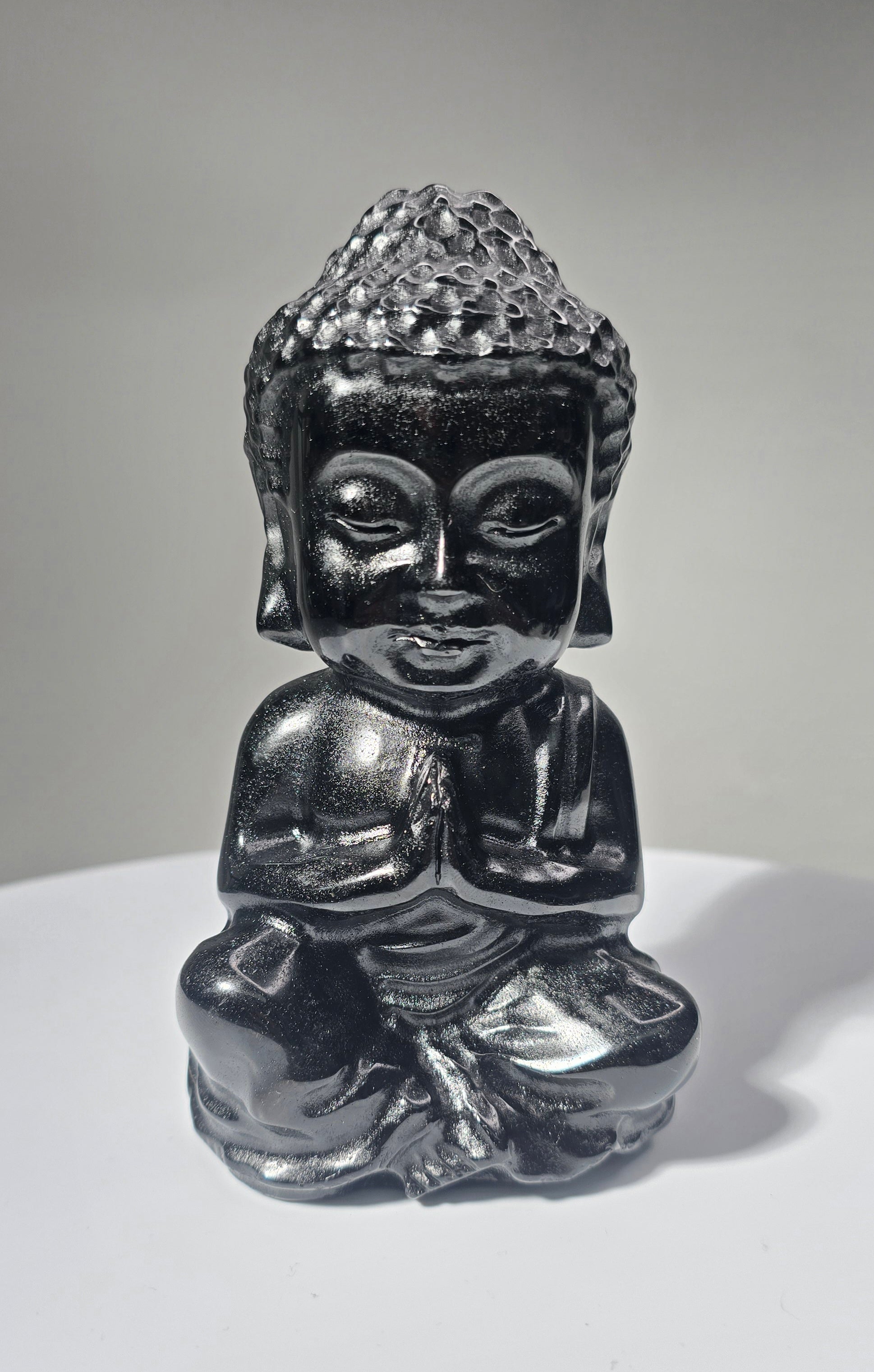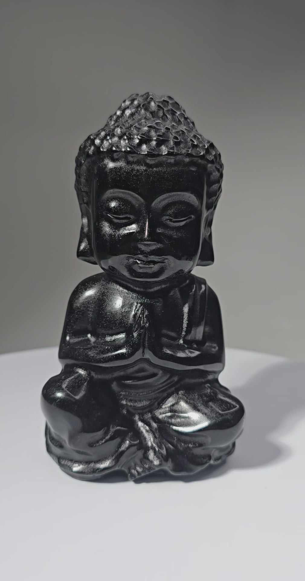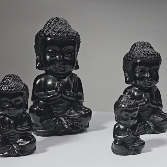 Crafted from polished black obsidian, these Buddha sculpture exude elegance and calm. The smooth, reflective surface highlights the deep black hue, symbolizing protection and inner strength. Ideal for creating a serene atmosphere, these pieces enhances any space with a refined touch of spirituality and mindfulness.