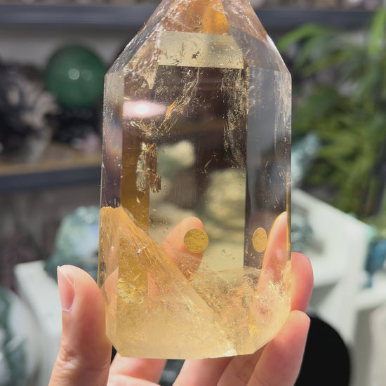 HQ Natural Citrine Tower from Brazil Sourced directly from our trusted supplier, this high-quality citrine tower showcases the golden-yellow hues characteristic of premium specimens. Each tower is hand-selected for superior quality, displaying well-defined termination points and minimal inclusions.