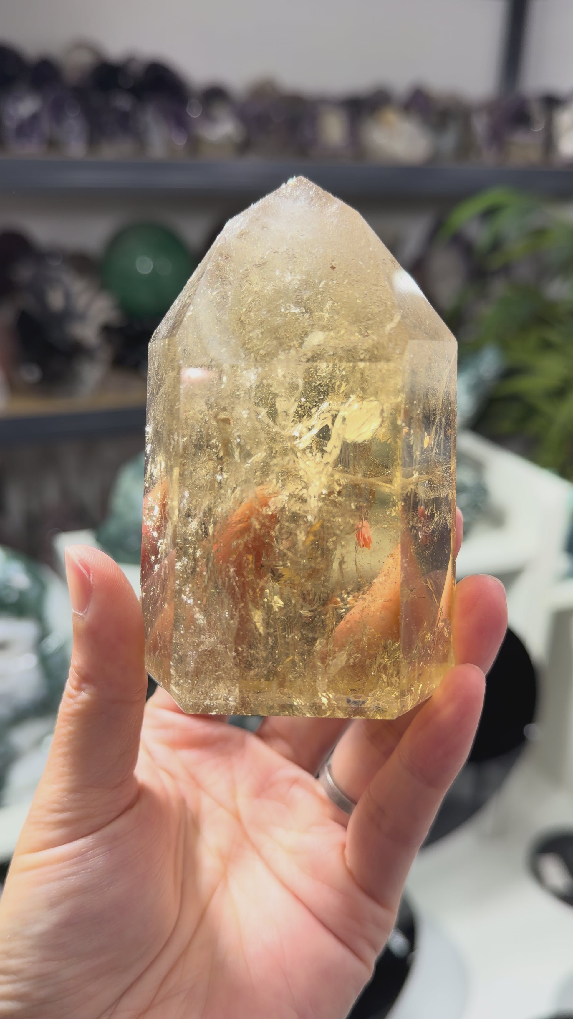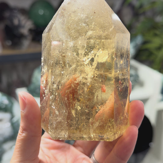 HQ Natural Citrine Tower from Brazil Sourced directly from our trusted supplier, this high-quality citrine tower showcases the golden-yellow hues characteristic of premium specimens. Each tower is hand-selected for superior quality, displaying well-defined termination points and minimal inclusions.